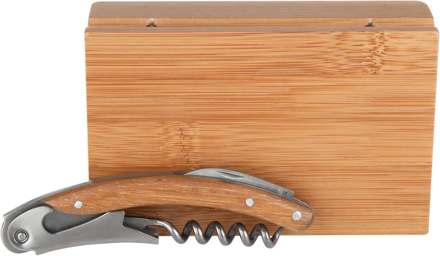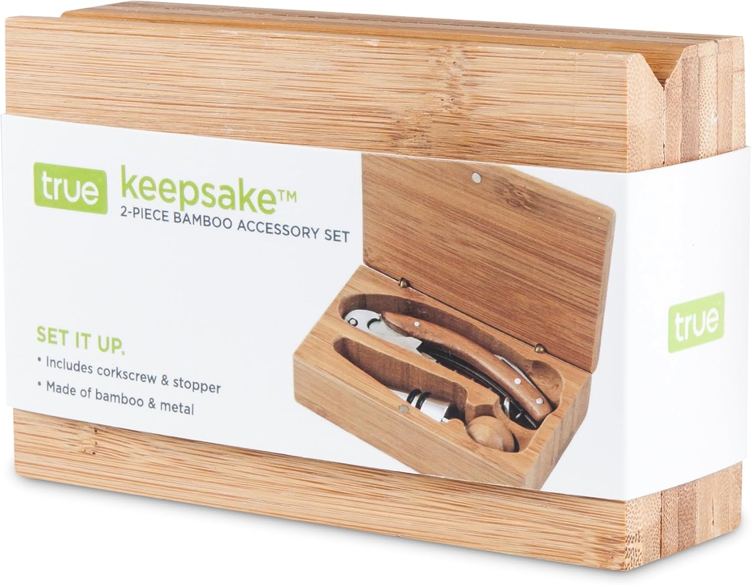 HIGH-QUALITY WINE ACCESSORY SET: Our Keepsake Bamboo Accessory Set features a naturally curved corkscrew opener and a smooth spherical bottle stopper, perfect for effortlessly uncorking your favorite wines and resealing your bottled beverages.