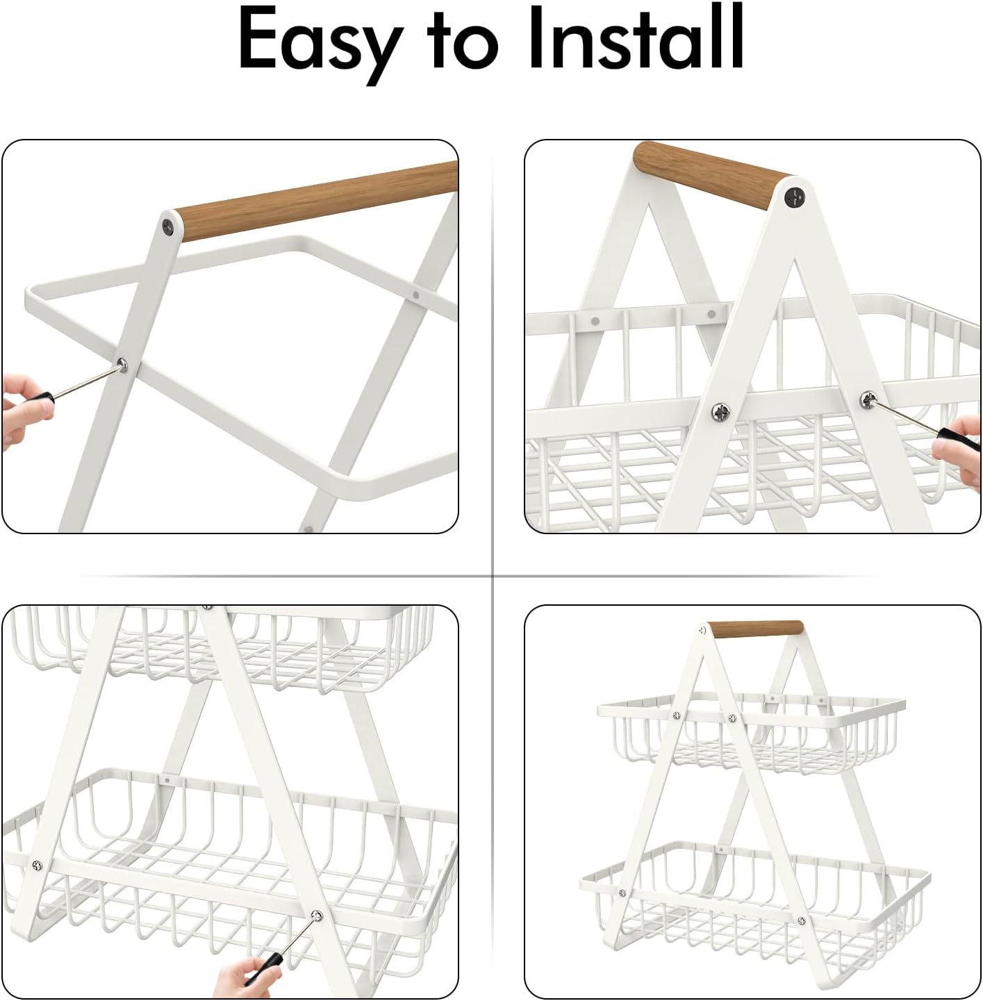 A functional helper to neatly store not only your fruits and veggies, but also bread, snacks, spice bottles or toiletries, household items, toys, tools and more. Use it in the kitchen, pantry or bathroom, compact enough to fit on the countertop, dining table or under cabinet.