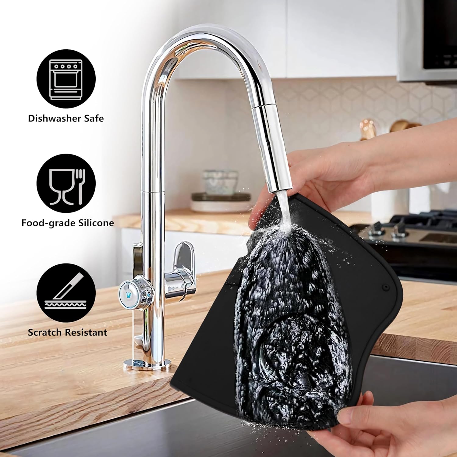 High Quality Food Grade Silicone. Odorless and safe for your family's health. Ideal for commercial or domestic use, Professional barista essential item Suitable for right-angle countertops. Keeps the portafilter from sliding around while you're tamping. Protect counters and portafilters from damage. Size: 8 inch X 6 inch(Length X Width), Hole Diameter:63mm ,Thickness: 7/20 inch,Overhang Size: 1-1/5 inch X 2/5 inch (Height X Width) Easy to clean, just rinse with water. If it's still not clean enough, use a brush or towel with water to scrub. 100% SATISFACTORY WARRANTY: if unfortunately our ESPRESSO SILICONE MAT did not work well ,please kindly contact us for exchange, refund or return