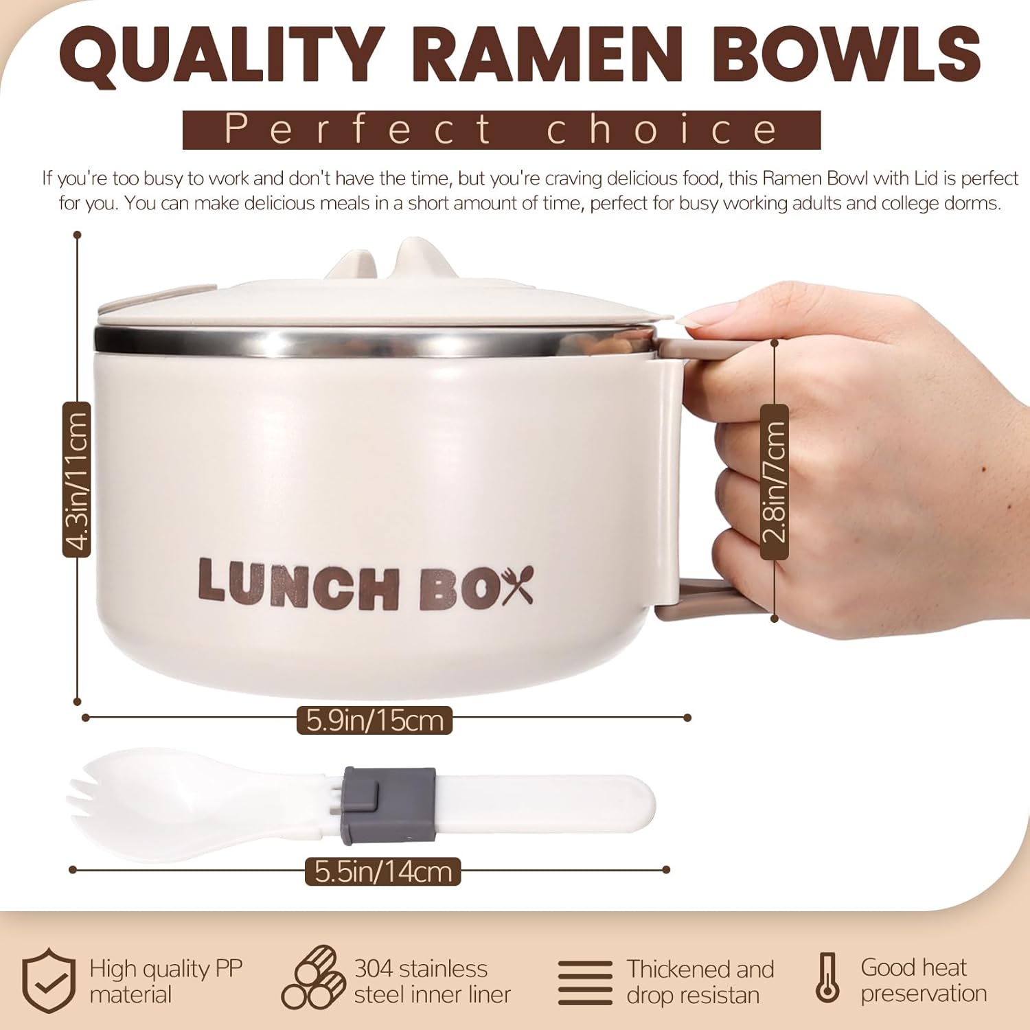 【Practical Tools for Eating】 Designed with convenience in mind, the ramen noodle bowl is ideal for eating instant noodles and is also a lunch box, perfect for busy office workers, college students, and family members.