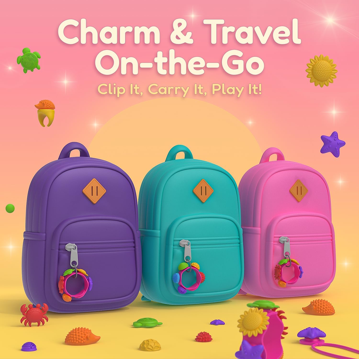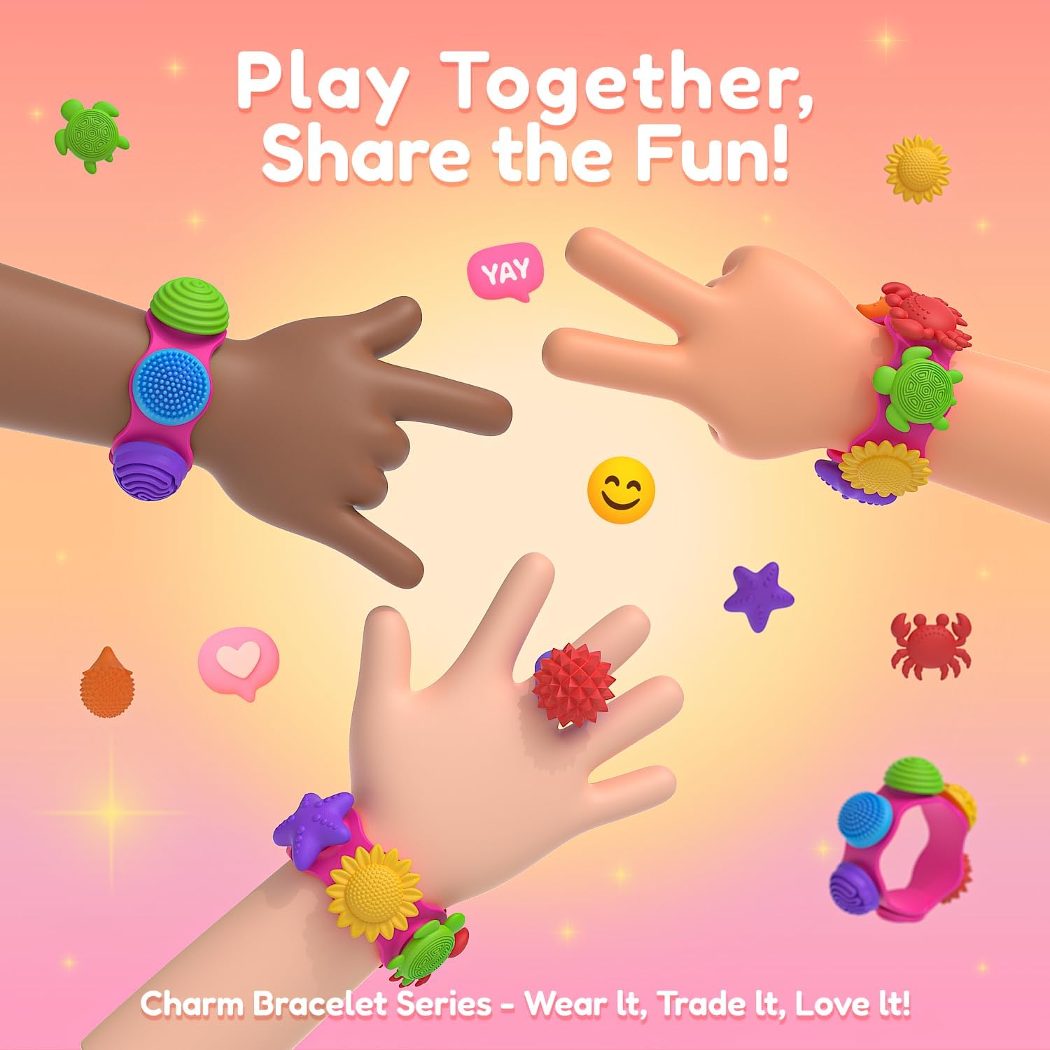 3-in-1 Wearable Sensory Fun: Transform your fidget experience! This unique set includes components to create a custom Fidget Ring, Charm Bracelet, and Necklace, offering three ways for kids to wear and play. Perfect for on-the-go sensory stimulation and discreet fidgeting 15 Unique DIY Fidget Charms: Unleash creativity with 10 different silicone sensory charms (starfish, crab, flower, textured dome, etc.). Kids can easily snap, switch, and combine the charms to design their own personalized jewelry, promoting fine motor skills and self-expression Calming Stress & Anxiety Relief: Designed to engage the senses, the various textures and shapes provide a satisfying tactile experience. Ideal for children with ADHD, Autism, or anxiety, these toys help improve focus, concentration, and emotional regulation in a fun, engaging way Safe, Soft & Durable Silicone: Crafted from high-quality, non-toxic, and soft silicone material, this set is perfectly sized and safe for little hands. The durable design ensures it can withstand endless pulling, twisting, and sensory play, making it a long-lasting addition to any toy collection The Perfect GIFTIARA Gift: Encourage social play and sharing! This colorful, customizable charm set makes an excellent gift for birthdays, holidays, or as a classroom reward. It’s a fantastic tool for promoting interactive play and building confidence through creative assembly