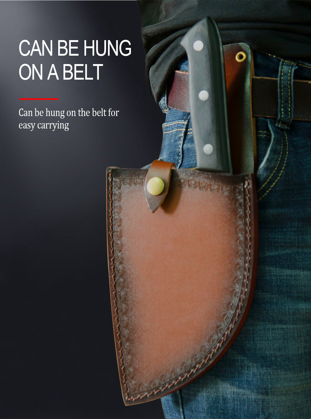 The butcher knife kitchen comes with an unique oxford fabric knife sheath to protect the knife blade, beautiful and more safety, and can be attached to the belt for easy carrying when using outdoor. This professional chefs butcher knife can easily handle your daily kitchen tasks of slicing, dicing and mincing by cutting vegetables and meat This butcher chef knife is made of manganese steel, the handle and the blade are integrated without soldering, which is firm and durable to eliminate broken handle Ergonomic Full Tang handle can prevent the blade comfortable to grip and non-slip effect. The kitchen cleaver butcher knife is a great beauty, impeccable performance this strong design with a good strength, durability