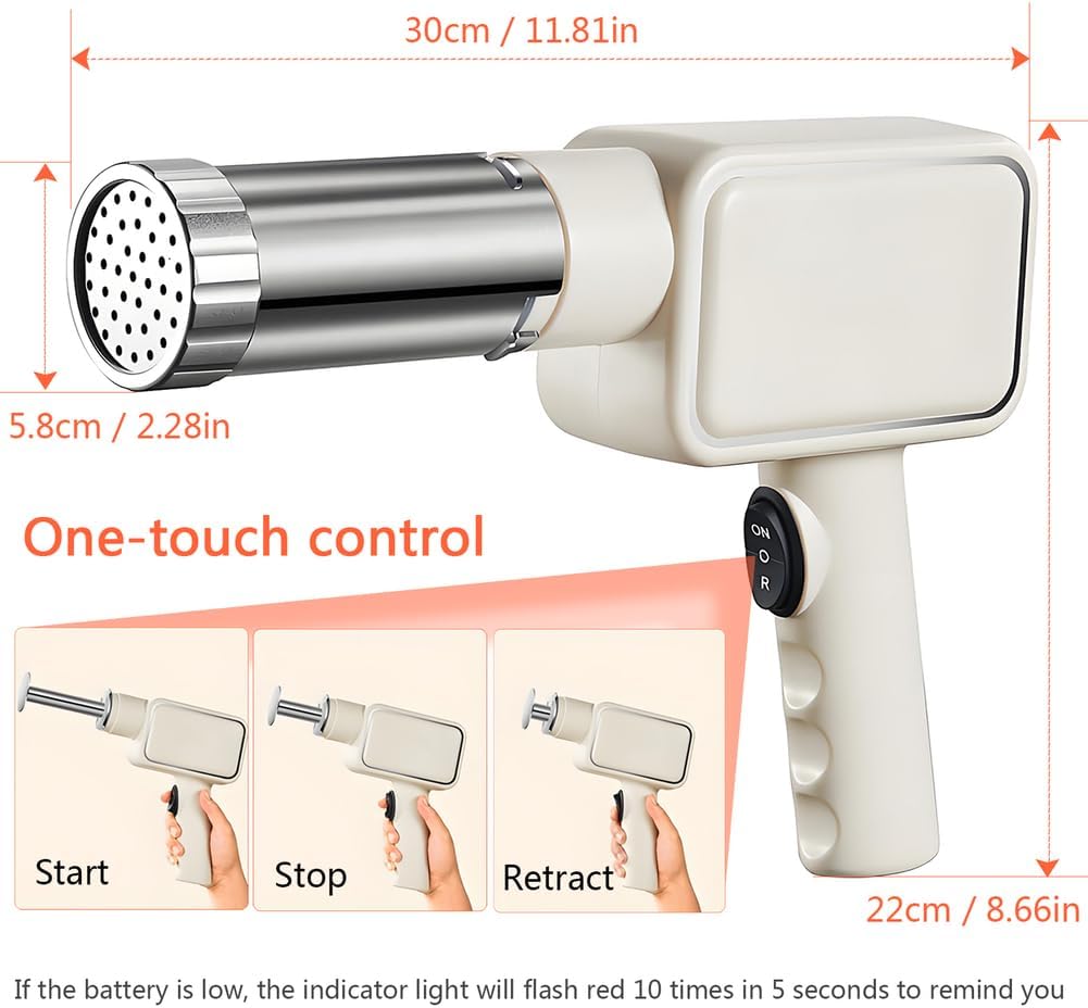 Cordless Pasta Machine: Enjoy true handheld portability in your kitchen. The USB rechargeable design (4 hours for a full charge) eliminates cord hassles, offering up to 50 uses per charge.