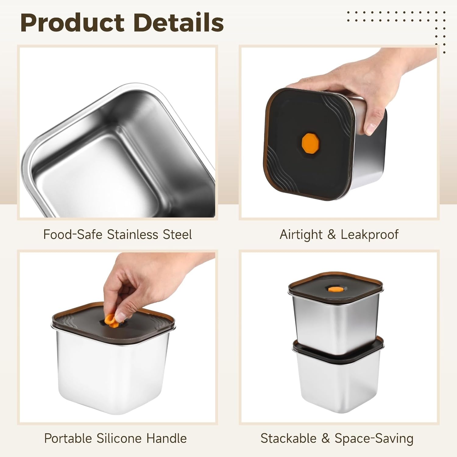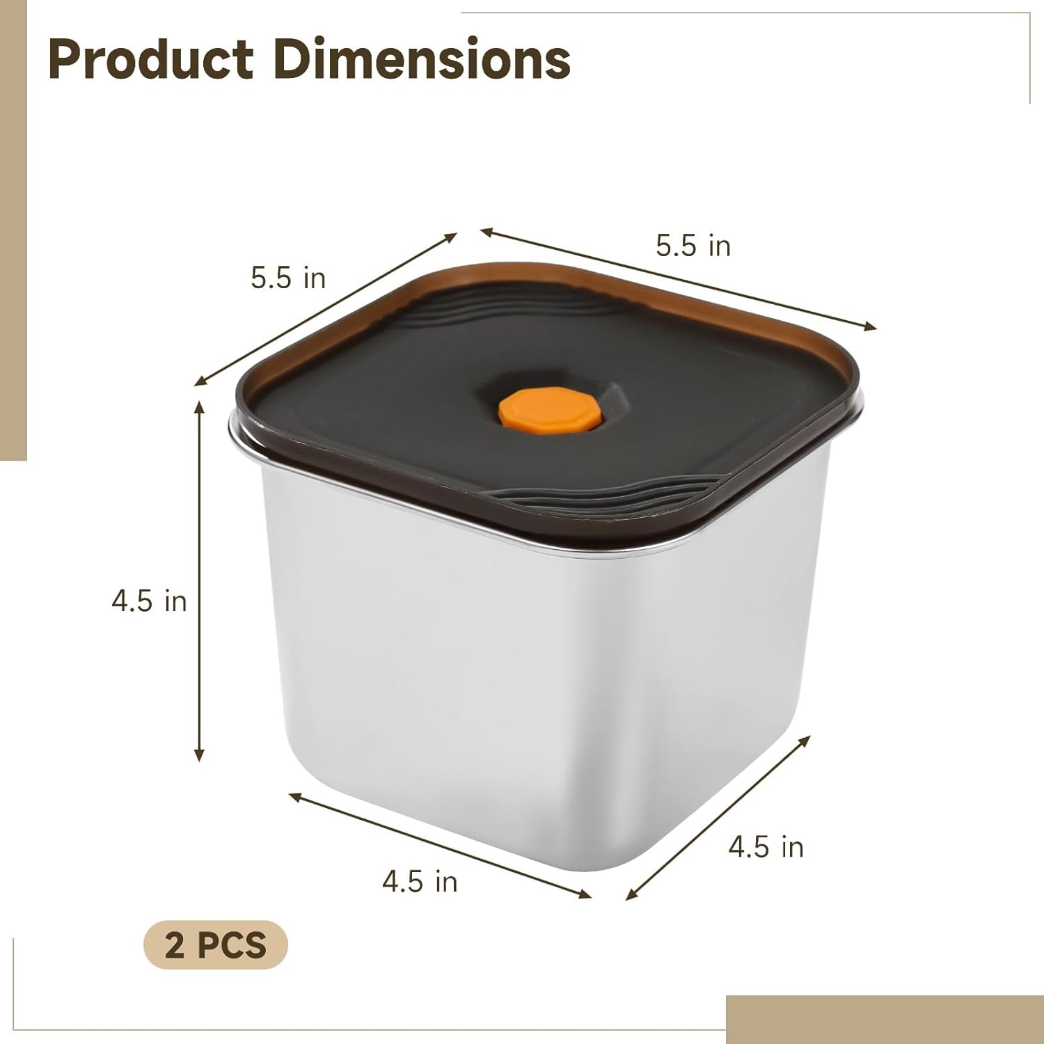 Sturdy Stainless Steel: Crafted from quality stainless steel for a clean, modern look; resists rust, stains, and lingering smells; great for storing fresh ingredients, leftovers, or baked goods with long-term reliability